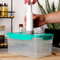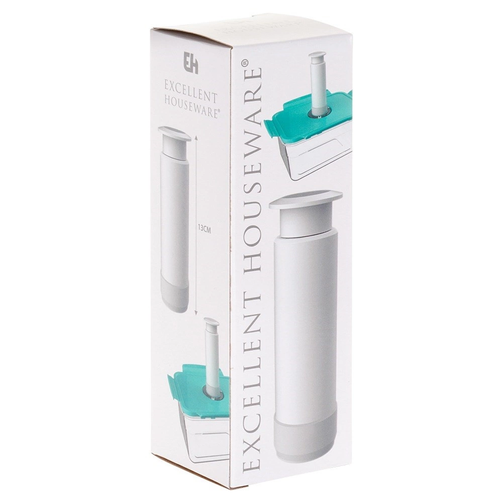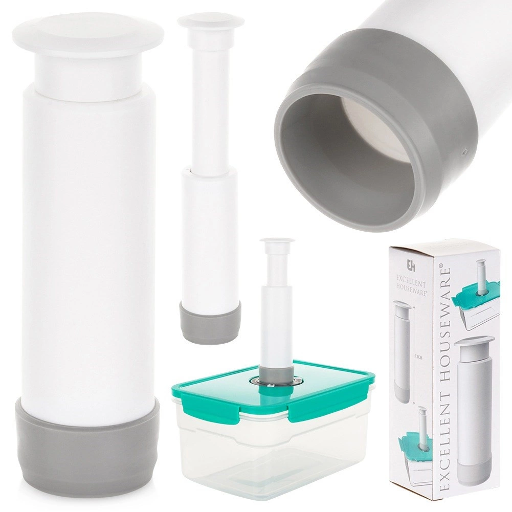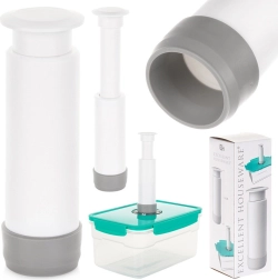 Pompe à vide manuelle compacte de 13,5 cm pour extraire rapidement l’air des sacs et contenants sous vide. En créant une fermeture hermétique sous vide, elle aide à garder les aliments frais plus longtemps, à préserver le goût, les vitamines et les nutriments et à réduire le gaspillage alimentaire. Légère, ergonomique et facile à utiliser ; la base en caoutchouc assure une adhérence étanche et une bonne stabilité à l’usage.