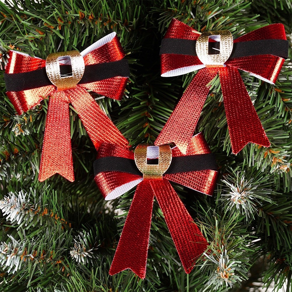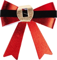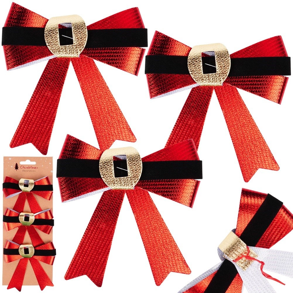 Élégant lot de trois nœuds de Noël de 10 × 10 cm qui apportera instantanément de l’éclat à vos décorations festives. Les nœuds, en finition rouge métallique avec bande noire et « boucle » dorée, évoquent le style de Noël classique. Ils sont légers, faciles à fixer à l’aide d’un fil, et conviennent au sapin, aux couronnes, aux rampes d’escalier et aux fenêtres. Grâce à un matériau de qualité, ils sont résistants, réutilisables et créent une atmosphère festive dans tout intérieur.