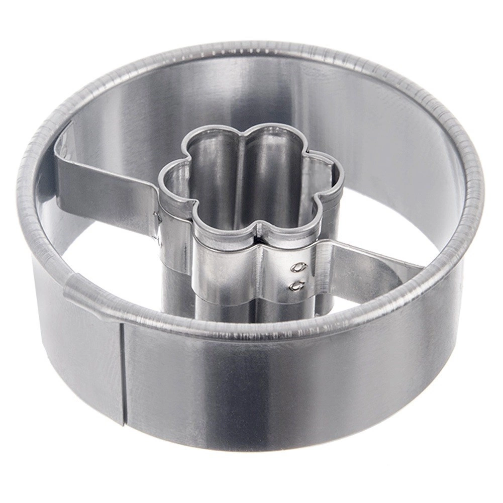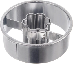 Pratique emporte-pièce en acier inoxydable en forme de cercle avec ouverture fleur au centre pour réaliser facilement des biscuits et pains d’épices originaux. Grâce à l’ouverture centrale, vous pouvez garnir les biscuits de confiture ou de chocolat. Acier inoxydable résistant, usage polyvalent et entretien facile au lave-vaisselle en font un excellent allié pour toutes vos pâtisseries.