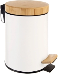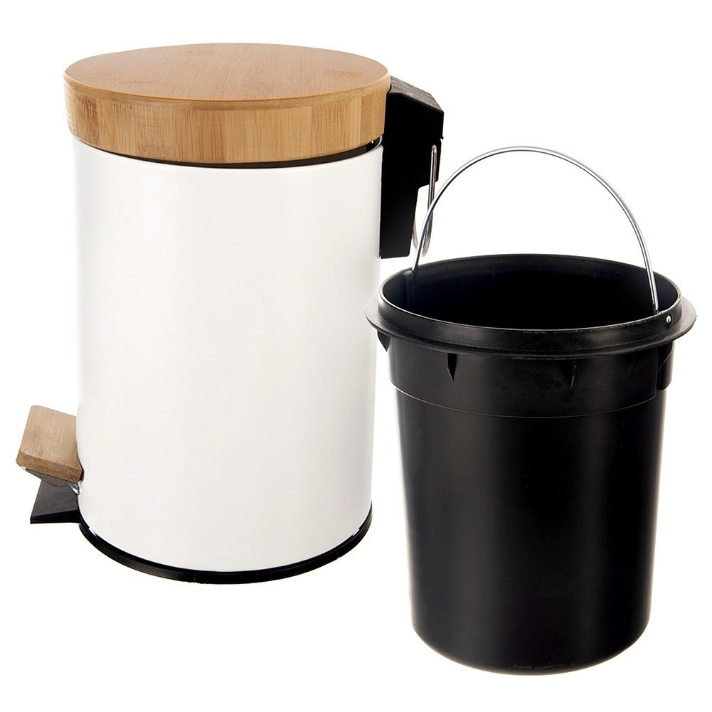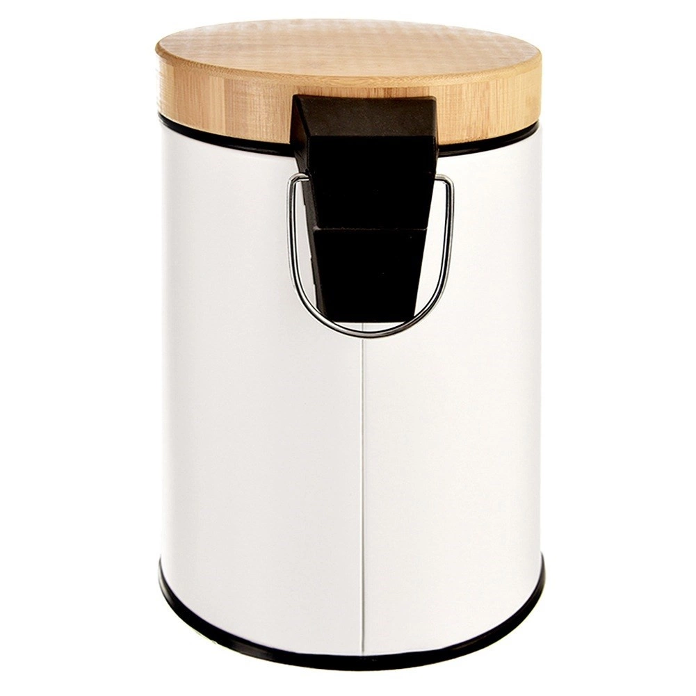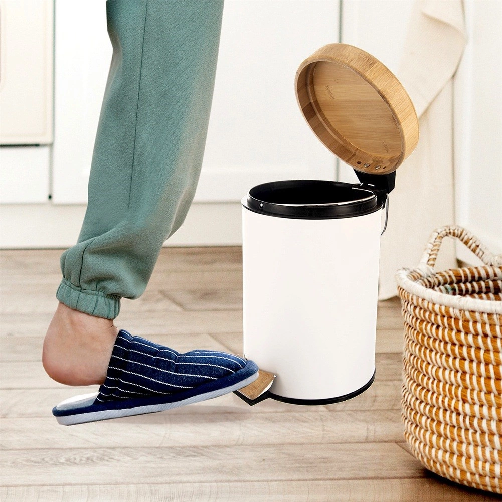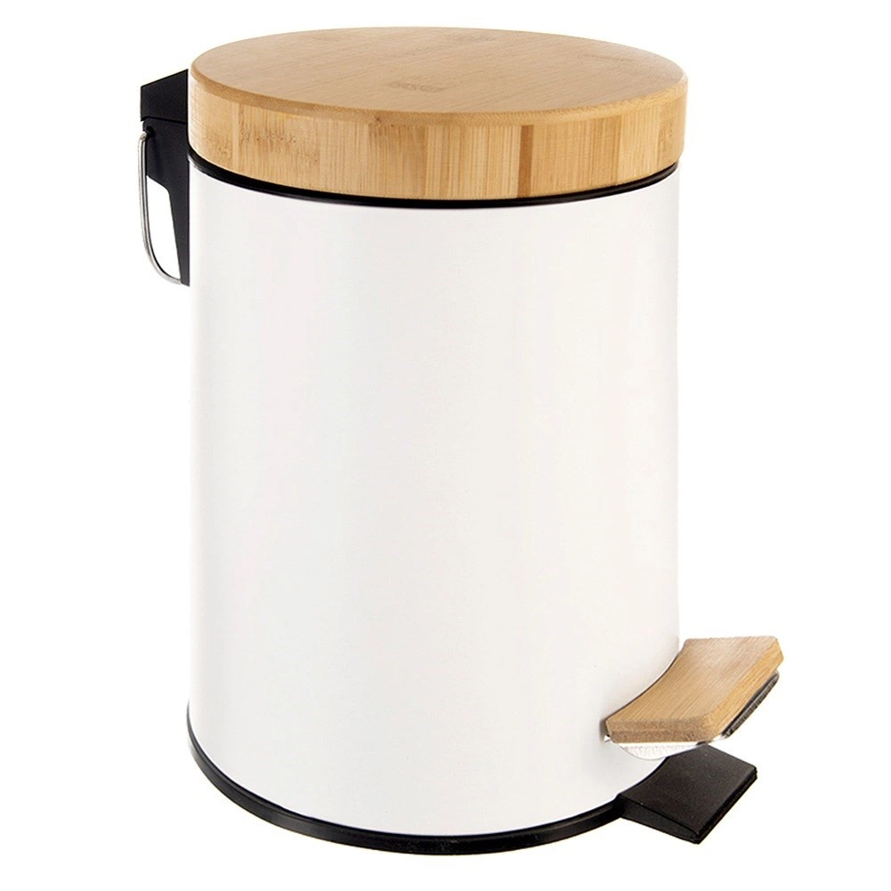 Poubelle compacte d’une capacité de 3 L au design élégant blanc avec couvercle et pédale en bambou, idéale pour la salle de bain, le bureau ou la chambre. Ouverture silencieuse et hygiénique par pédale, seau intérieur amovible pour un vidage facile et design moderne et minimaliste pour tout environnement.