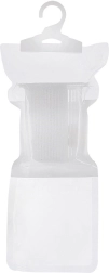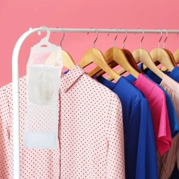 Grâce à son crochet pratique, vous le suspendez aisément à une tringle de penderie ou à un crochet mural. Le granulé absorbant à base de CaCl₂ capte l’humidité de l’air et la transforme en eau qui s’accumule dans la partie inférieure du sachet. Une fois rempli, le produit doit être remplacé.