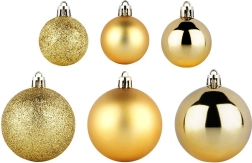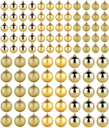 Créez une atmosphère magique à la maison avec ce set de 100 boules dorées combinant des finitions mattes, brillantes et pailletées. La conception incassable en plastique de qualité garantit sécurité et durabilité, tout en offrant un rendu proche du verre. Grâce aux deux tailles de 4 et 6 cm, vous obtenez aisément un aspect riche et équilibré pour votre sapin de Noël.