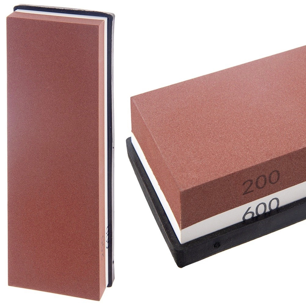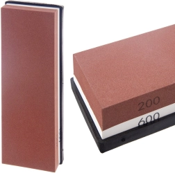 La pierre double face combine un grain 200 pour un affûtage rapide et un grain 600 pour la finition et le polissage avec un seul outil.