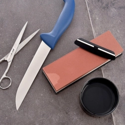 La base en silicone antidérapant assure un appui ferme. Convient aux couteaux de cuisine, ciseaux, ciseaux à bois et outils de jardin.