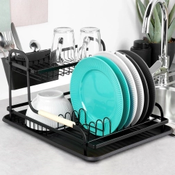 Égouttoir à vaisselle noir à deux niveaux 48,5 × 32 × 23,5 cm