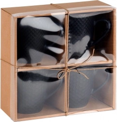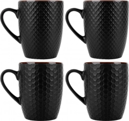 Découvrez un ensemble pratique et élégant de 4 mugs en céramique de haute qualité, noirs avec motif géométrique en relief. Grâce à leur anse confortable, leur surface agréable et leur forme stable, ils sont parfaits pour déguster café, thé ou cacao chauds. Le design mat avec bord contrasté apporte une touche moderne qui s’intègre facilement dans toute cuisine.