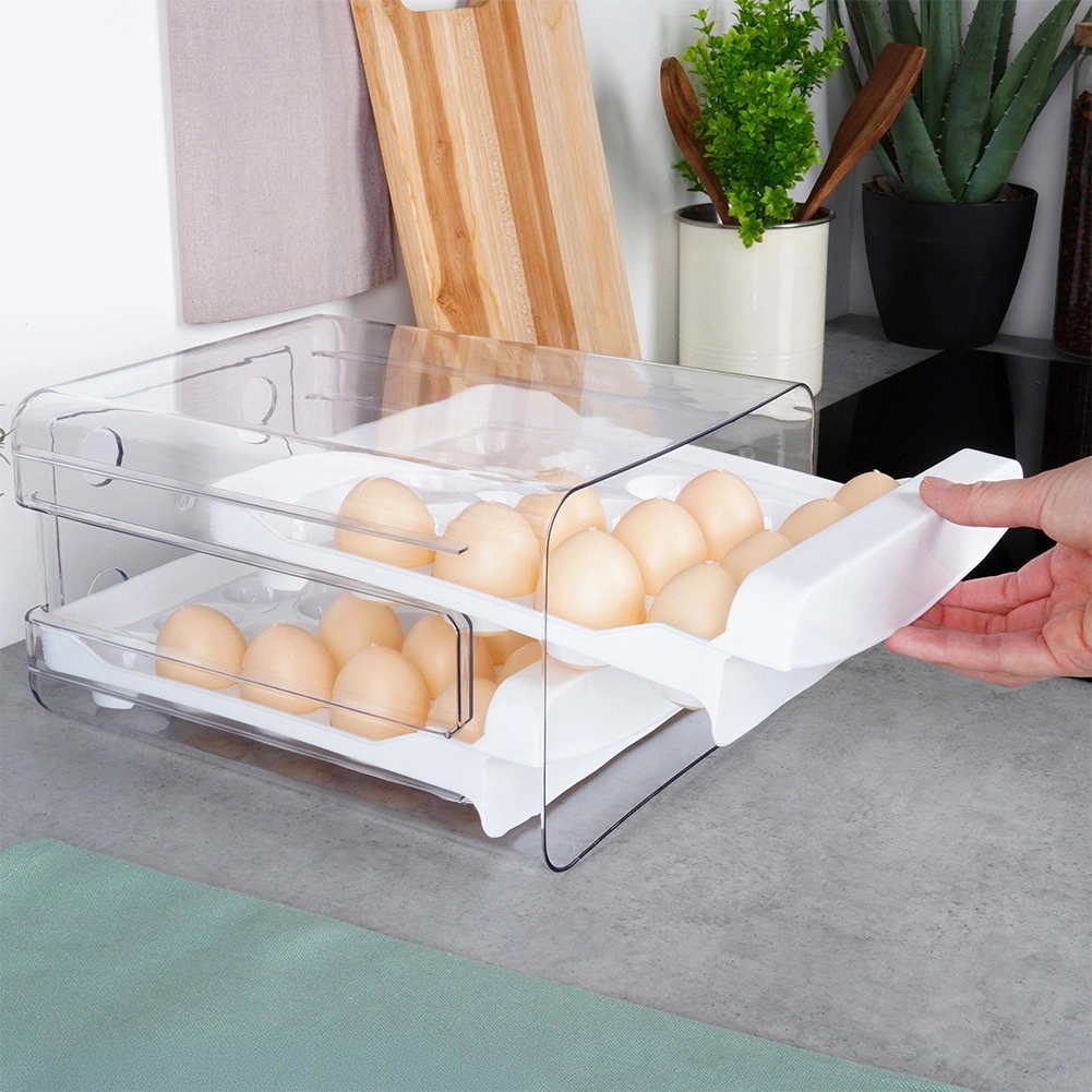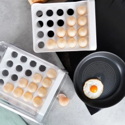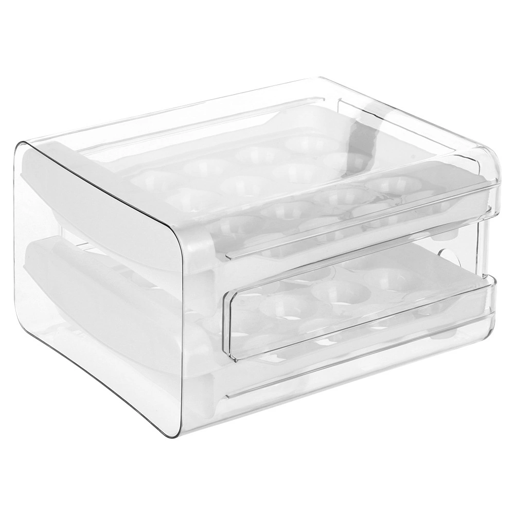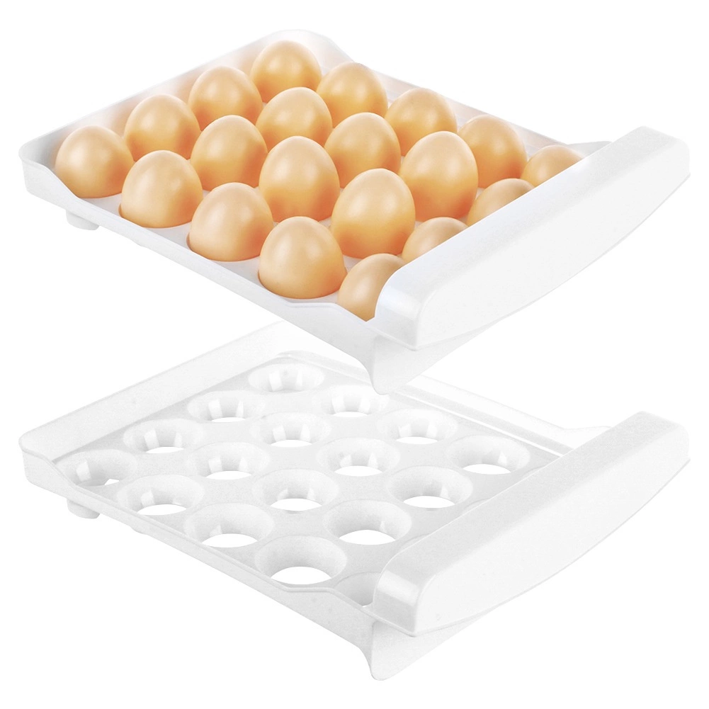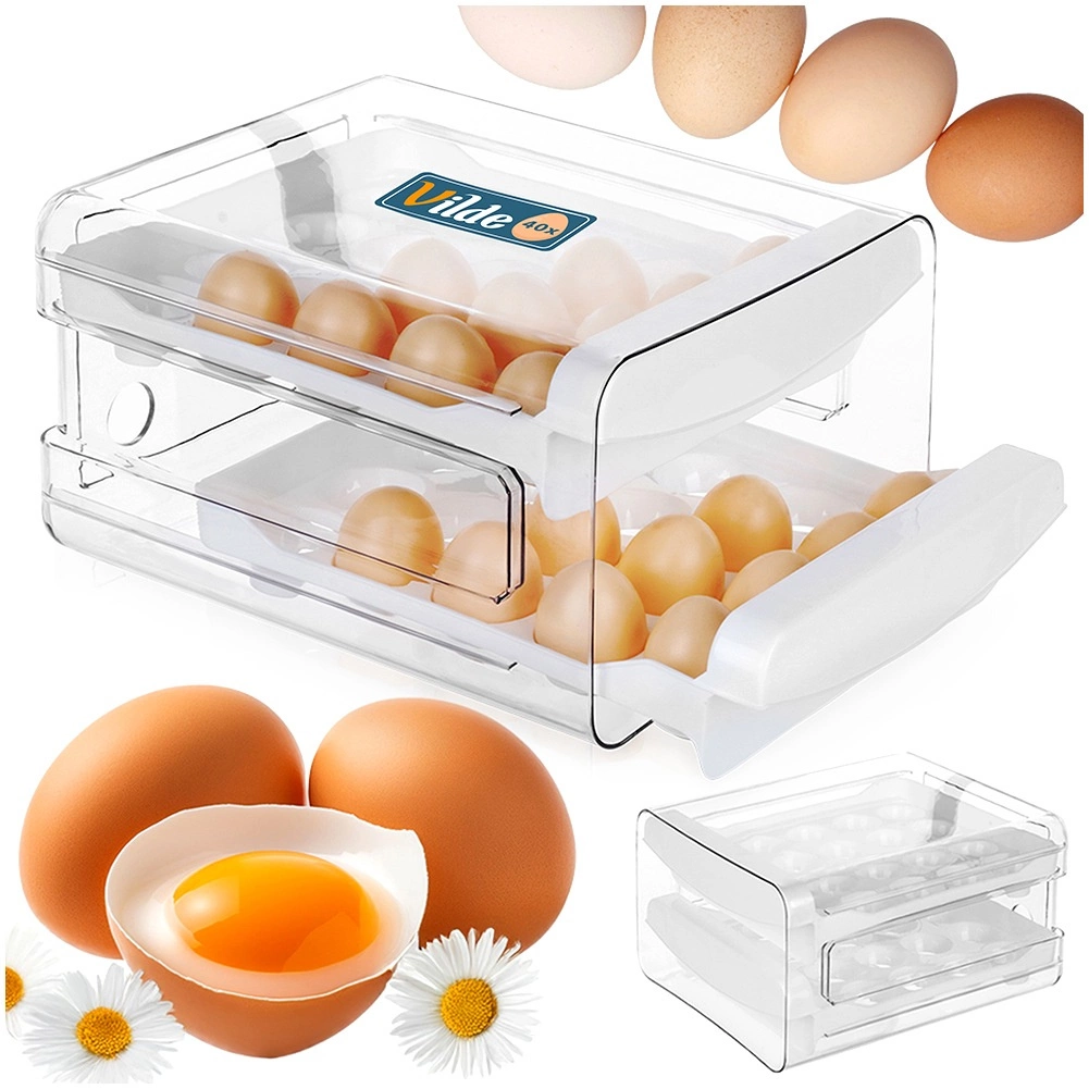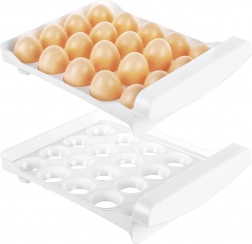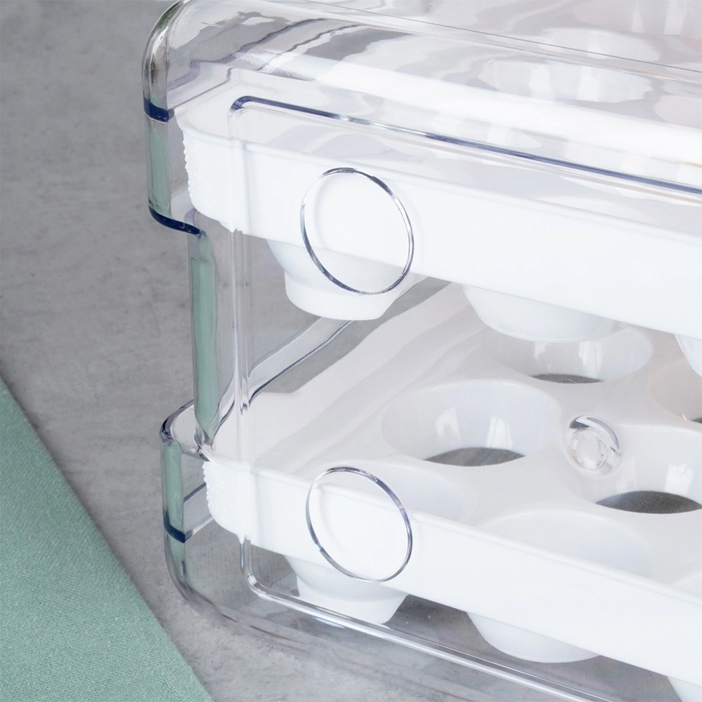 Gardez votre réfrigérateur en ordre avec ce range-œufs à deux niveaux d'une capacité de 40 pièces (20 par étage). Le couvercle transparent et les inserts blancs à alvéoles spéciales assurent la stabilité des œufs sans roulis. Grâce à cette conception astucieuse, les œufs sont mieux protégés contre les dommages et restent frais plus longtemps.