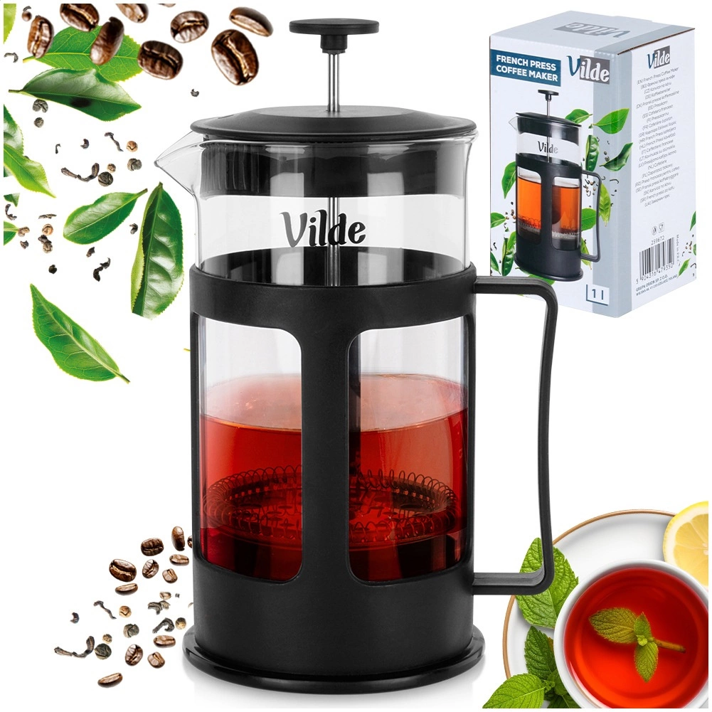 Le french press VILDE allie la simplicité de la préparation manuelle à une saveur pure. La carafe en verre borosilicaté résiste aux chocs thermiques, tandis que le piston en acier inoxydable avec maille fine retient même les particules les plus petites pour une boisson cristalline. La poignée ergonomique et le bec précis facilitent le service à domicile comme en restauration.