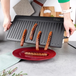Surface lisse pour les crêpes et la cuisson à la poêle, face striée pour des marques de grill nettes et l’évacuation de l’excès de graisse.