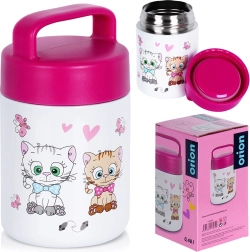 Le thermos alimentaire pour enfants au motif de chatons séduit par son look et sa fonctionnalité. Grâce à sa large ouverture, il se remplit facilement de soupes, purées, salades ou en-cas fruités, et le nettoyage est tout aussi simple. L’acier inoxydable assure durabilité et hygiène, tandis que le couvercle avec joint empêche efficacement toute fuite.