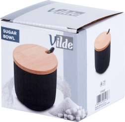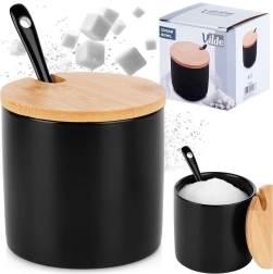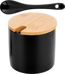 Sucrier en céramique avec couvercle en bambou et cuillère, noir 250 ml