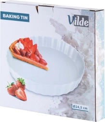 Élégant moule à tarte en céramique de 24,5 cm de diamètre avec bord ondulé pour des desserts et quiches parfaitement formés. En céramique résistante pour une répartition uniforme de la chaleur, adapté au four jusqu’à 350 °C, au micro-ondes et au lave-vaisselle. Idéal pour la cuisson quotidienne et un service élégant.