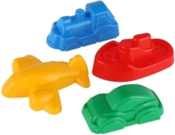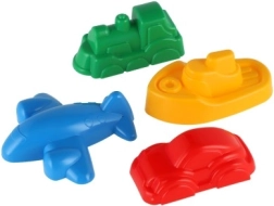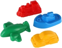 4 moules en plastique (train, bateau, avion, voiture)