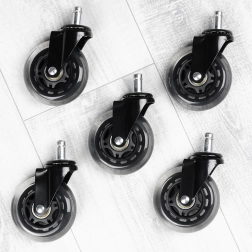 Un lot pratique de cinq roulettes de rechange pour chaises de bureau assure un déplacement silencieux et fluide sur sols durs sans grincements désagréables. La surface en caoutchouc est douce pour le sol tout en étant résistante à l’usure, garantissant une utilisation quotidienne durable au bureau comme à la maison.