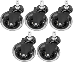 Remplacez les anciennes roulettes par des roulettes en caoutchouc de qualité pour un déplacement fluide et silencieux de votre chaise. Lot de 5 pièces, diamètre de roue 75 mm et tige 11 mm. Protège le sol des rayures, roulement silencieux, montage facile sans outils et large compatibilité (non compatibles avec les chaises IKEA).