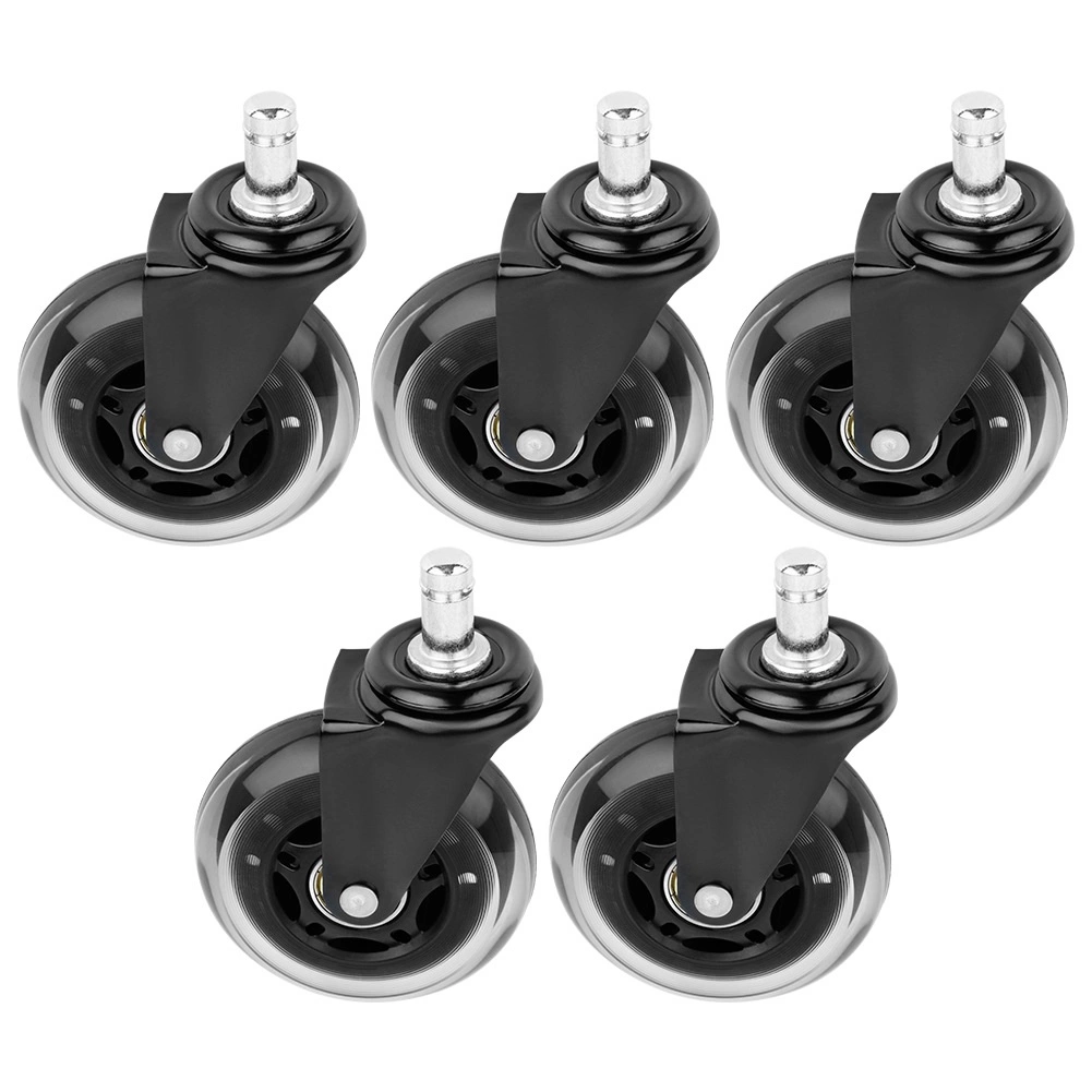 Roulettes en caoutchouc pour chaise de bureau 75 mm, tige 11 mm, lot de 5