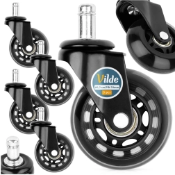 Améliorez votre chaise de bureau avec un jeu de roulettes en caoutchouc robustes offrant un fonctionnement silencieux et un démarrage en douceur sur toutes les surfaces dures. Grâce à la tige de 10 mm de diamètre, les roulettes sont compatibles avec la plupart des chaises courantes et avec certains modèles IKEA utilisant le même type de fixation.