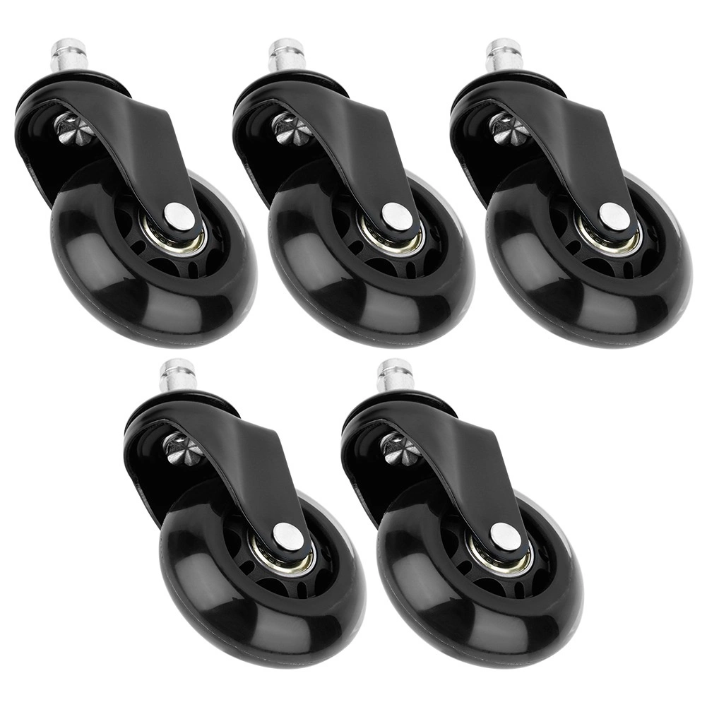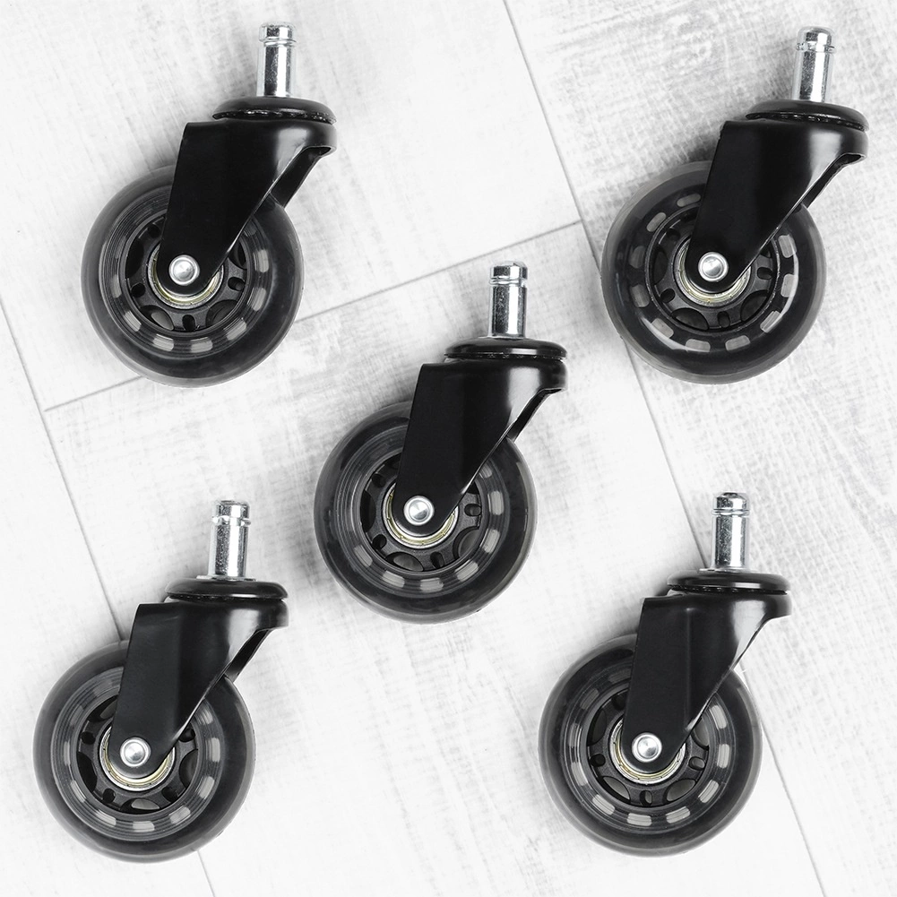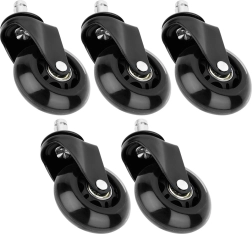 Roulettes en caoutchouc pour chaise de bureau 63 mm, tige 10 mm, lot de 5