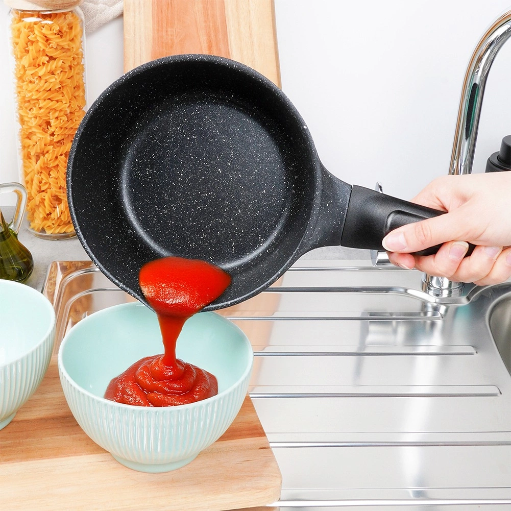 La casserole en aluminium robuste avec revêtement granit antiadhésif PFLUON GRANIT est un excellent choix pour préparer sauces, soupes, bouillies ou pour réchauffer rapidement le lait. Le revêtement est résistant aux rayures, sans PFOA ni PTFE, et maintient une température uniforme sur toute la surface. Grâce au bec verseur, vous transférez les liquides facilement et proprement.