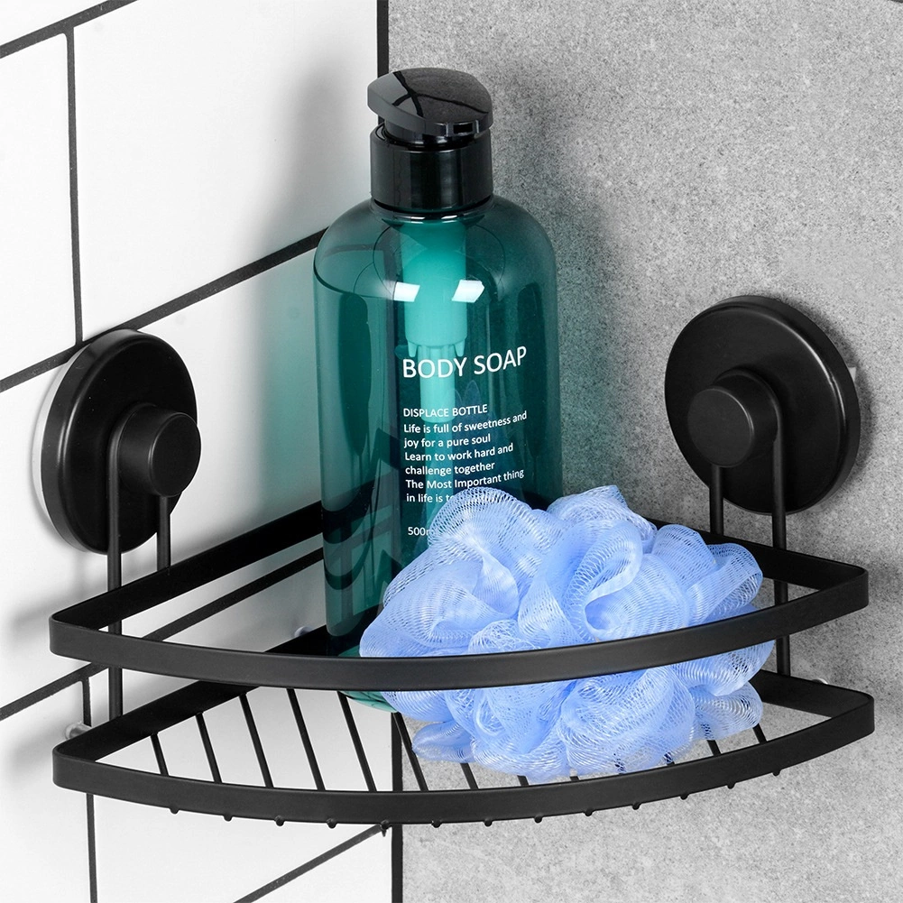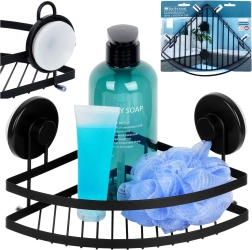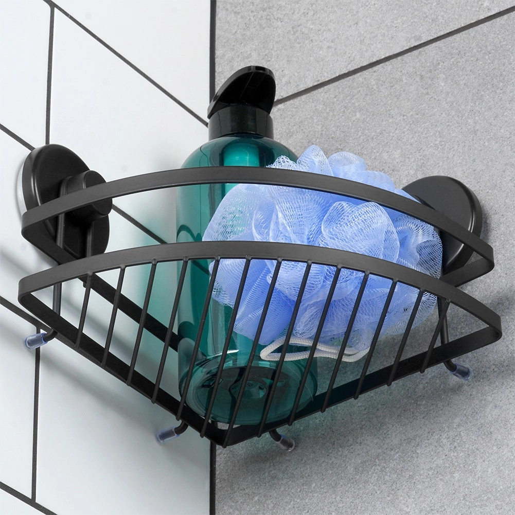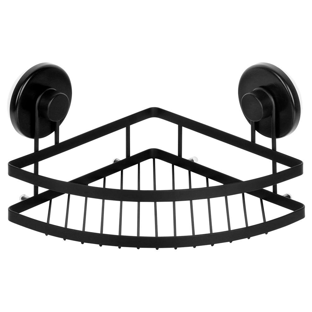 Pratique étagère de douche d’angle en métal résistant noir mat offrant une installation sans perçage avec ventouses, un gain de place dans le coin et une capacité de charge jusqu’à 3,5 kg. Idéale près de la baignoire, dans la douche ou près du lavabo – elle garde vos produits de soin bien organisés et au sec grâce à sa structure ouverte pour l’évacuation de l’eau.