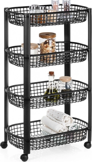 Maximisez le rangement sur une petite surface. Cette étagère fine de 46,5 × 26 × 79 cm dispose de quatre paniers pratiques (46,5 × 26 × 7,5 cm) qui, grâce à leur structure ajourée, offrent visibilité et ventilation. Les quatre roulettes permettent de déplacer facilement le chariot d’une pièce à l’autre ; deux roulettes possèdent un frein pour un maintien sûr sur place.