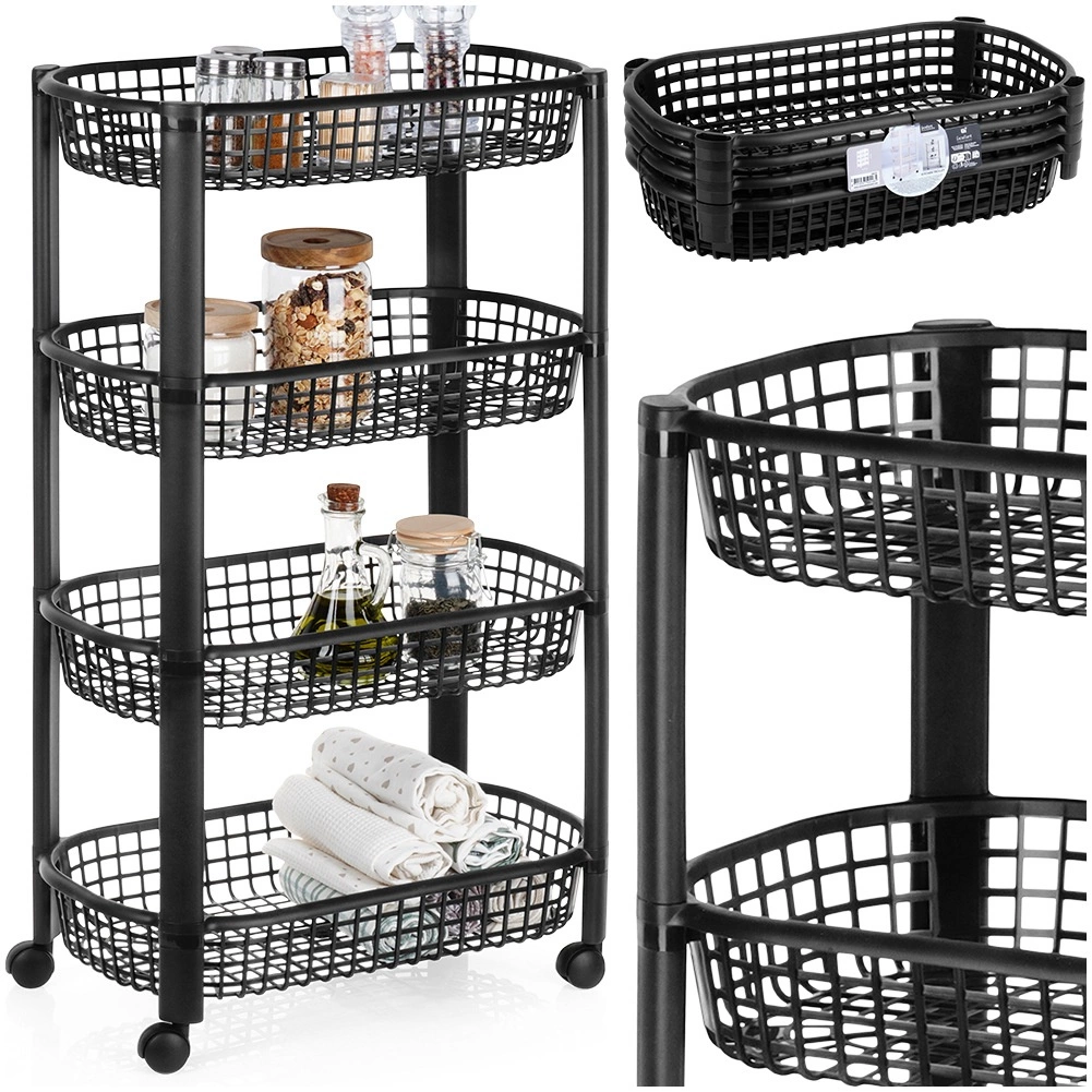 Les paniers à mailles assurent la circulation de l’air et une bonne visibilité du contenu. Matériau léger mais solide, de couleur noire, facile à nettoyer.