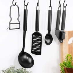 La poignée ergonomique avec œillet de suspension assure une prise en main agréable et un accrochage facile sur une barre de cuisine.
