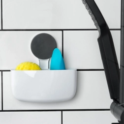 La forme ouverte avec bord supérieur arrondi permet un accès facile à l’éponge, à la brosse ou aux cosmétiques directement sous la douche.