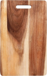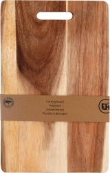 Planche rectangulaire en bois d’acacia de qualité offrant une grande résistance, une bonne stabilité et une longue durée de vie. Sa surface naturelle au beau veinage protège les lames et, grâce à son épaisseur de 1,5 cm, amortit bien les chocs lors de la découpe. La poignée pratique permet un transport et une suspension aisés.
