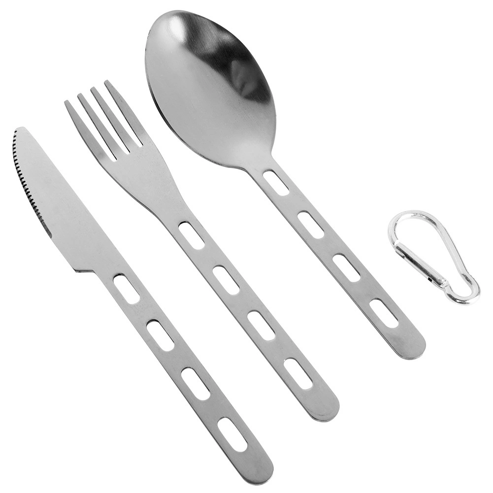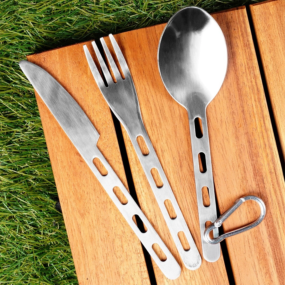 Couverts de camping en inox avec mousqueton, 3 pièces