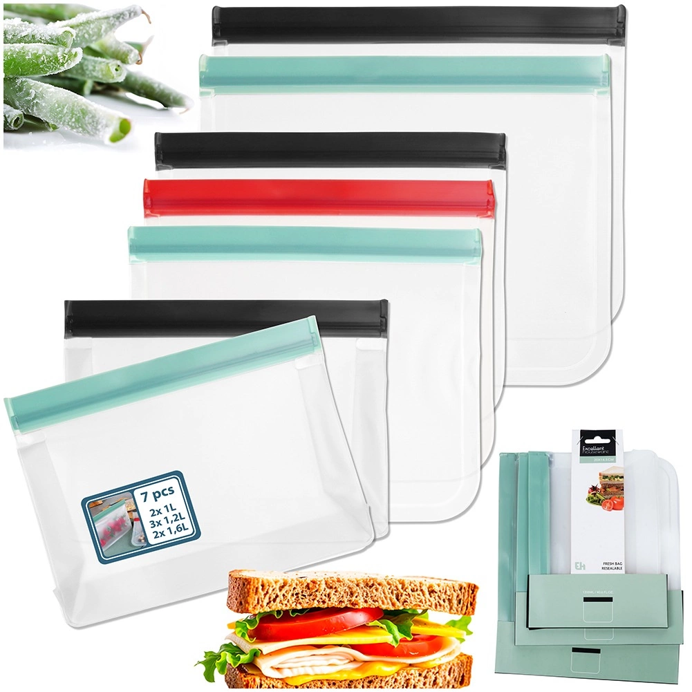 Pratique ensemble de 7 sachets zip transparents en trois tailles pour le stockage quotidien des aliments à la maison comme en déplacement. Grâce à la fermeture zip hermétique, ils gardent le contenu frais plus longtemps, sont robustes et réutilisables, adaptés au réfrigérateur et au congélateur et transparents pour un contrôle rapide du contenu.