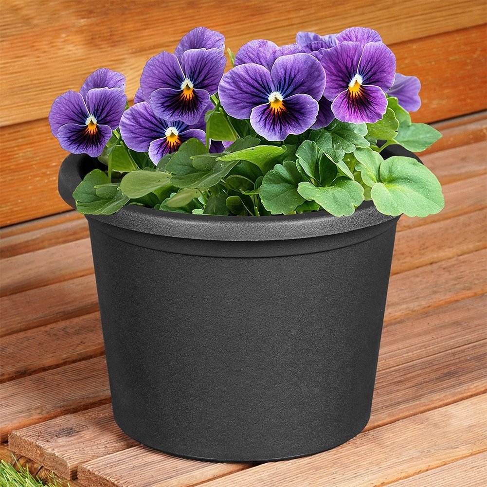 Pot de fleurs rond en plastique noir 23 cm pour jardin