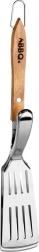 Outil de grillade robuste combinant les avantages d’une spatule et d’une pince en un seul instrument. La longueur de 40 cm assure une distance de sécurité par rapport à la chaleur, tandis que la tête perforée en inox évacue efficacement graisses et jus pour un résultat croustillant et uniformément cuit. Le manche en bois ergonomique offre une prise sûre et confortable.