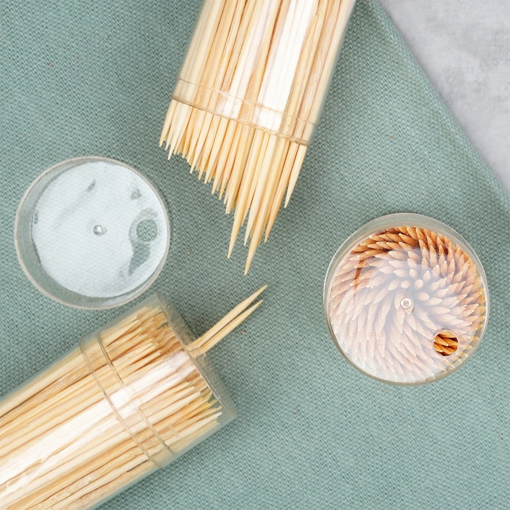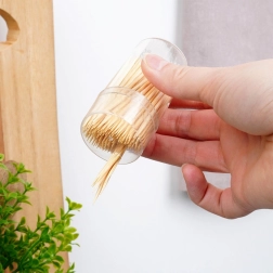 Le bocal transparent avec couvercle et orifice de distribution permet de retirer rapidement et de façon hygiénique les cure-dents sans toucher inutilement les autres.