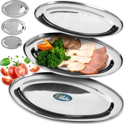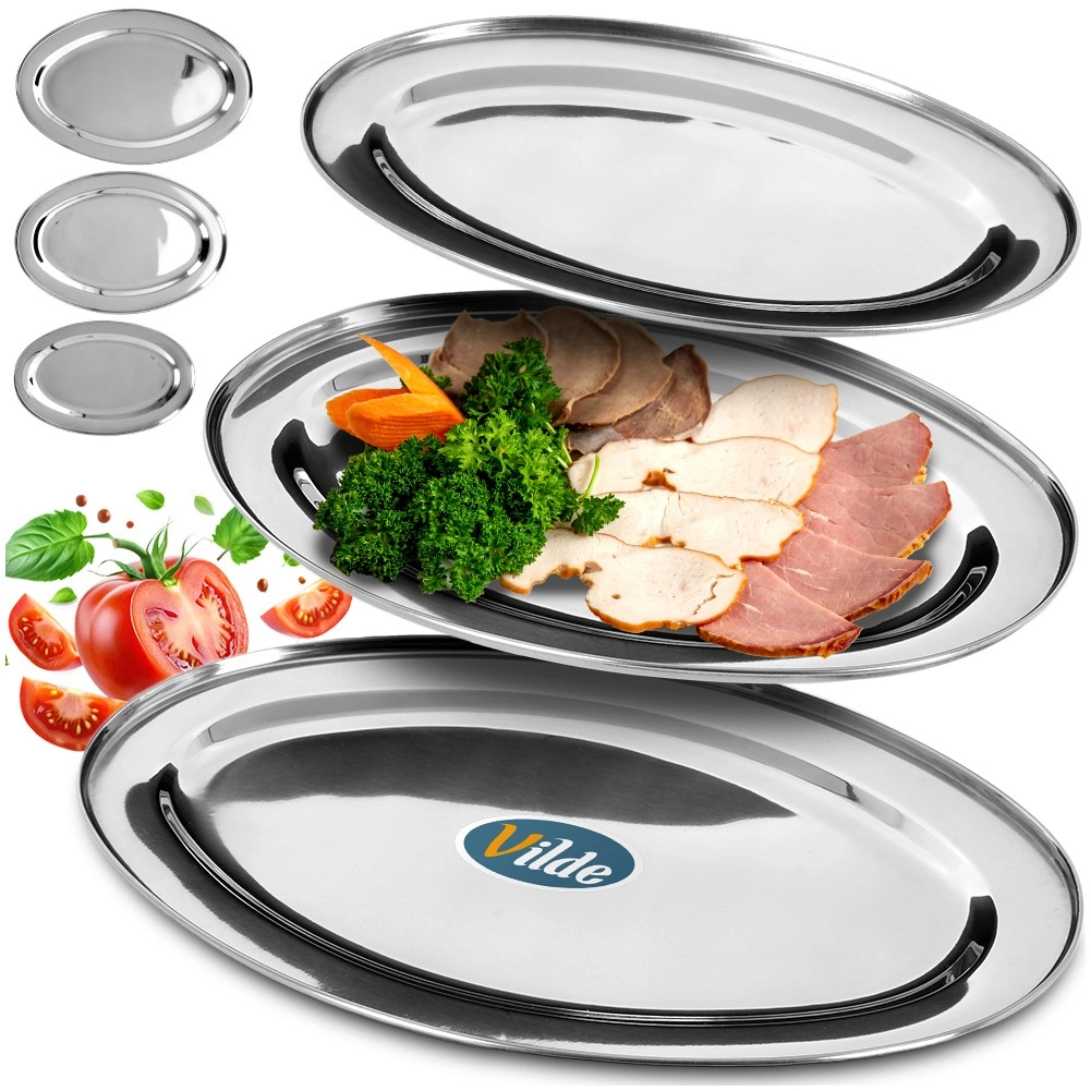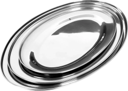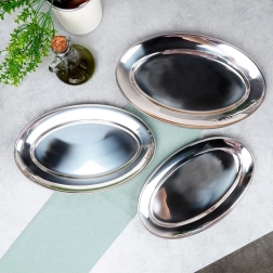 Élégant ensemble de trois plateaux ovales en acier inoxydable finition brillante pour un service stylé. Idéal pour entrées, assortiments, desserts et fruits, adapté à la maison comme à la restauration. Structure solide et stable avec bord relevé pour éviter l’écoulement des jus. Design intemporel qui s’accorde avec toute table.