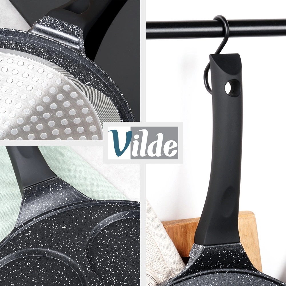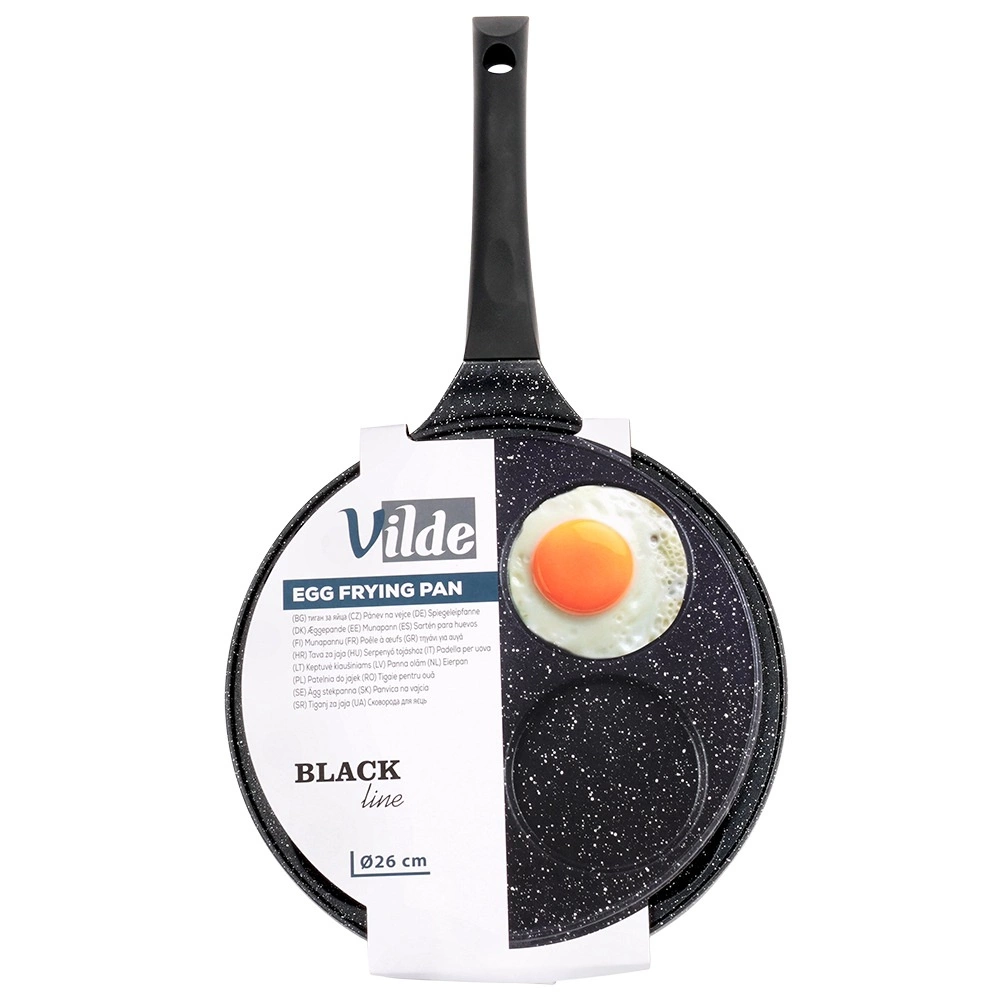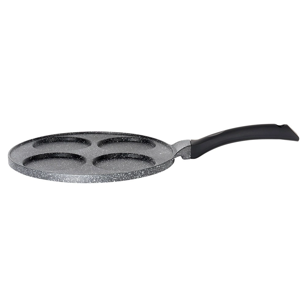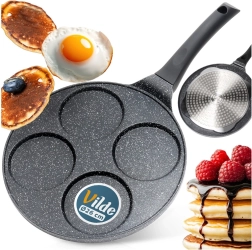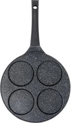 Cette élégante poêle de la ligne BLACK LINE de 26 cm de diamètre possède quatre moules ronds peu profonds, idéaux pour les œufs, pancakes et mini crêpes. Le revêtement granit antiadhésif permet de cuisiner plus sainement avec moins d’huile et facilite le service comme le nettoyage.
