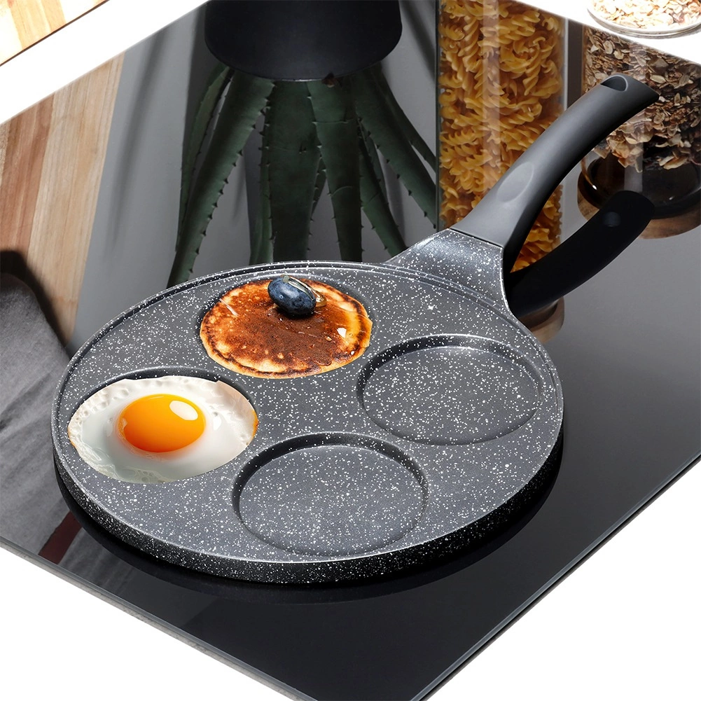 Quatre cavités circulaires de 9 cm de diamètre assurent des œufs, pancakes et mini crêpes uniformément formés, sans effort.