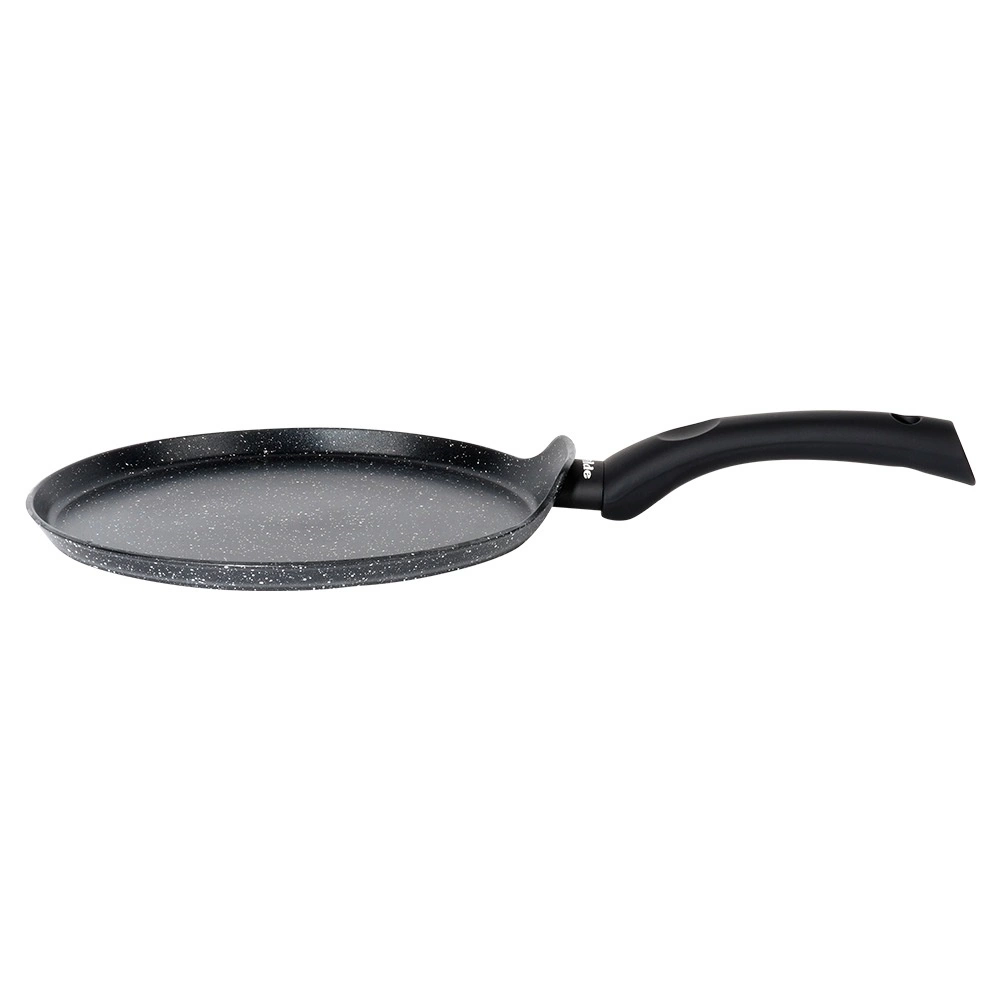 La poêle est fabriquée en aluminium résistant pour une montée en température rapide et homogène, ce qui économise temps et énergie. Compatible avec tous les types de tables de cuisson, y compris l’induction, et facile à nettoyer grâce au revêtement antiadhésif – passe au lave-vaisselle. Idéale pour la préparation quotidienne de crêpes, galettes et omelettes.