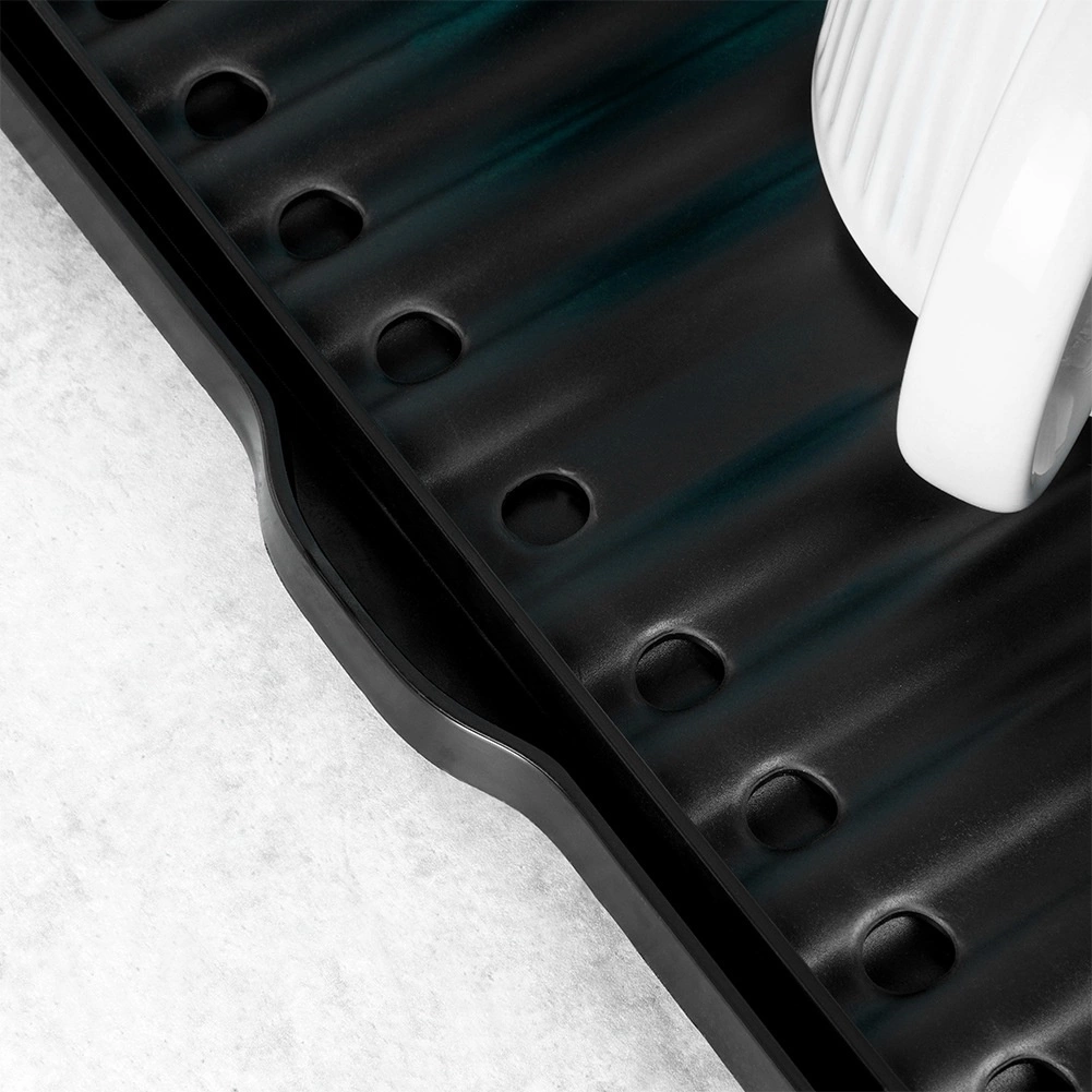 La surface rainurée et les orifices de drainage accélèrent le séchage et empêchent la stagnation de l’eau sous la vaisselle.