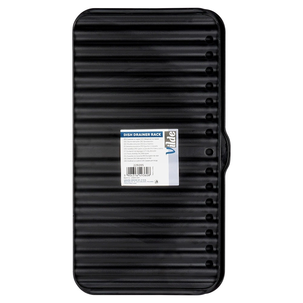 Pratique et extensible, ce tapis d’égouttage en plastique résistant, de couleur noire, garde le plan de travail propre et sec. Il offre deux niveaux de séchage, un rainurage antidérapant et des canaux d’évacuation avec un bec verseur pratique. Ses dimensions compactes et son entretien facile en font une excellente alternative au égouttoir classique à la maison comme en voyage.