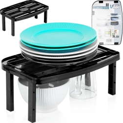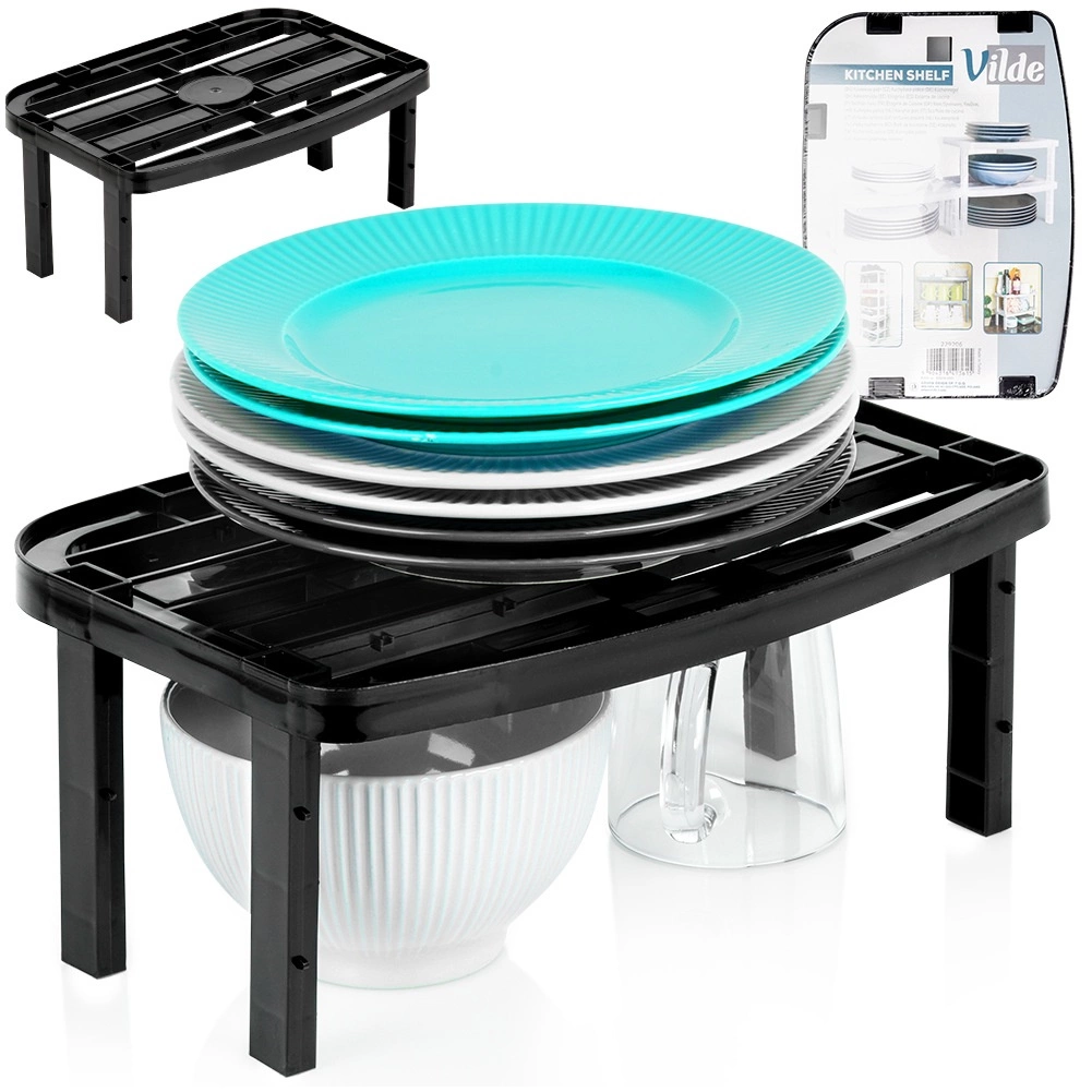 Étagère de cuisine empilable, noire, hauteur réglable 31 × 22 × 14,5/11,5 cm