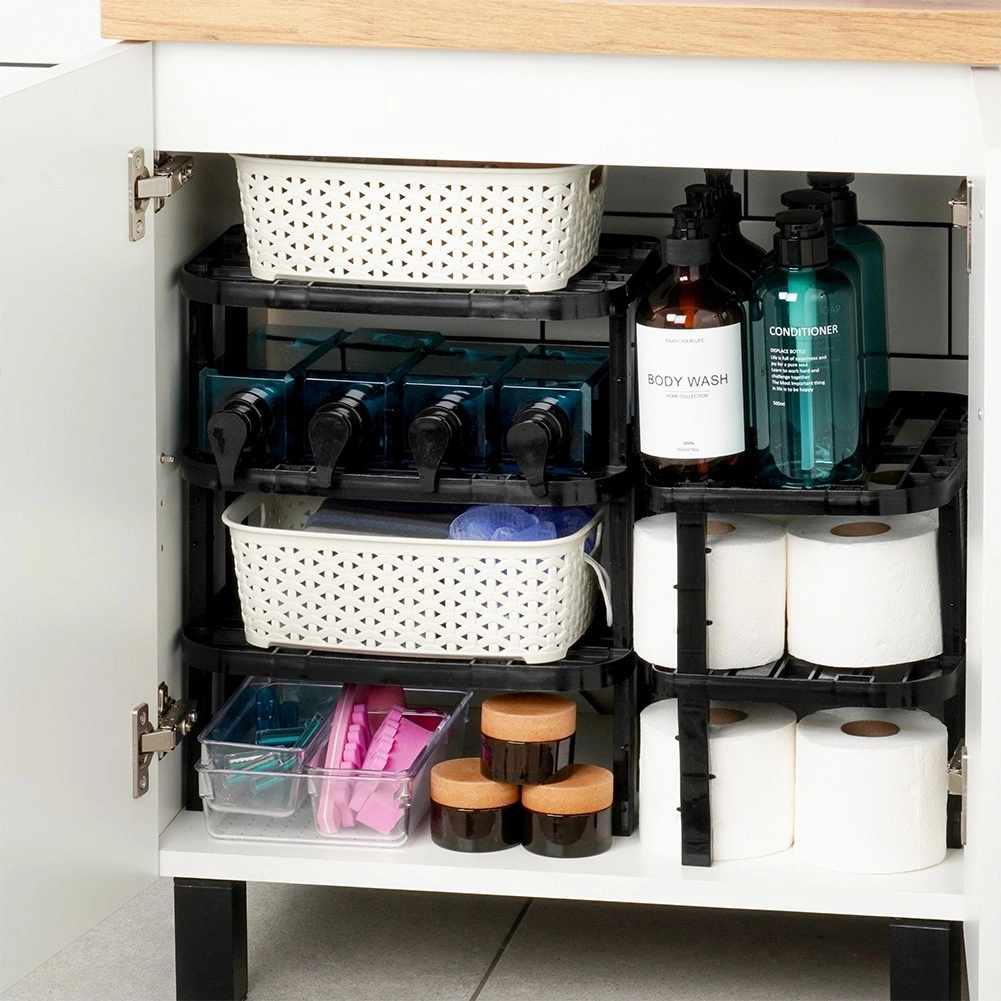 Créez facilement plusieurs niveaux de rangement. Convient à la cuisine, au garde-manger, à la salle de bain ou au bureau.
