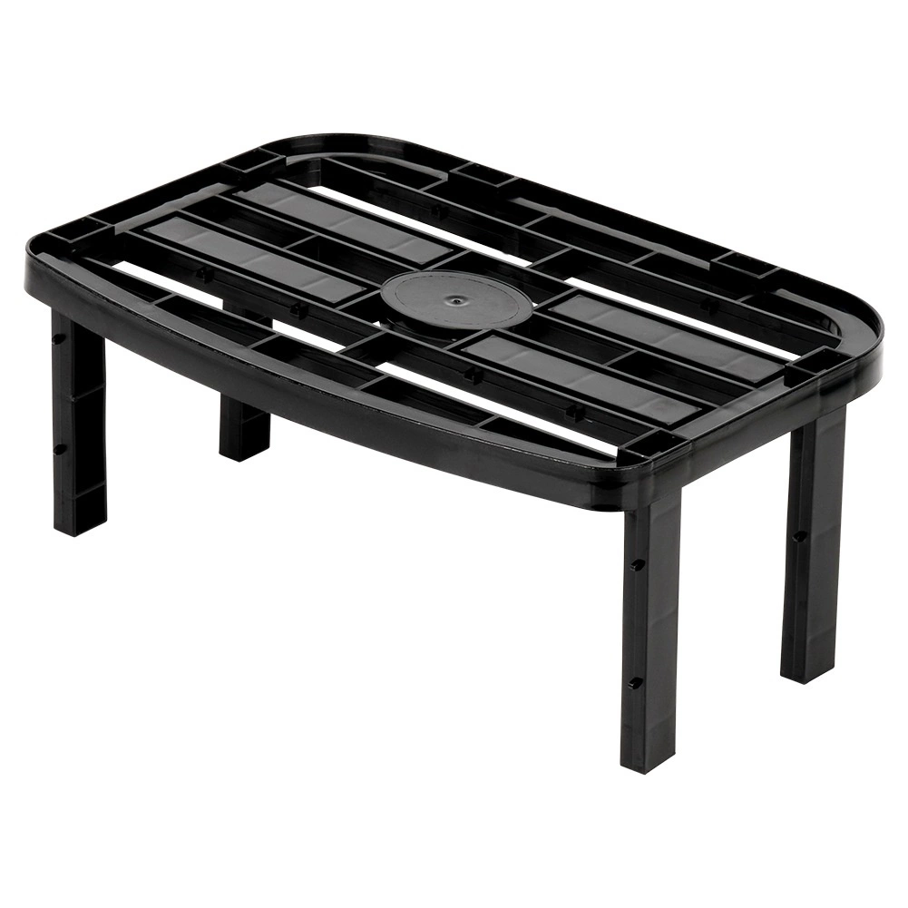 Sa structure robuste en plastique noir est stable, simple à entretenir, et grâce à deux jeux de pieds (13 cm et 10,5 cm), vous choisissez une hauteur finale de 14,5 cm ou 11,5 cm. Adaptée à la cuisine, au garde-manger, à la salle de bain et au bureau, l’étagère est empilable pour créer plusieurs niveaux de rangement.