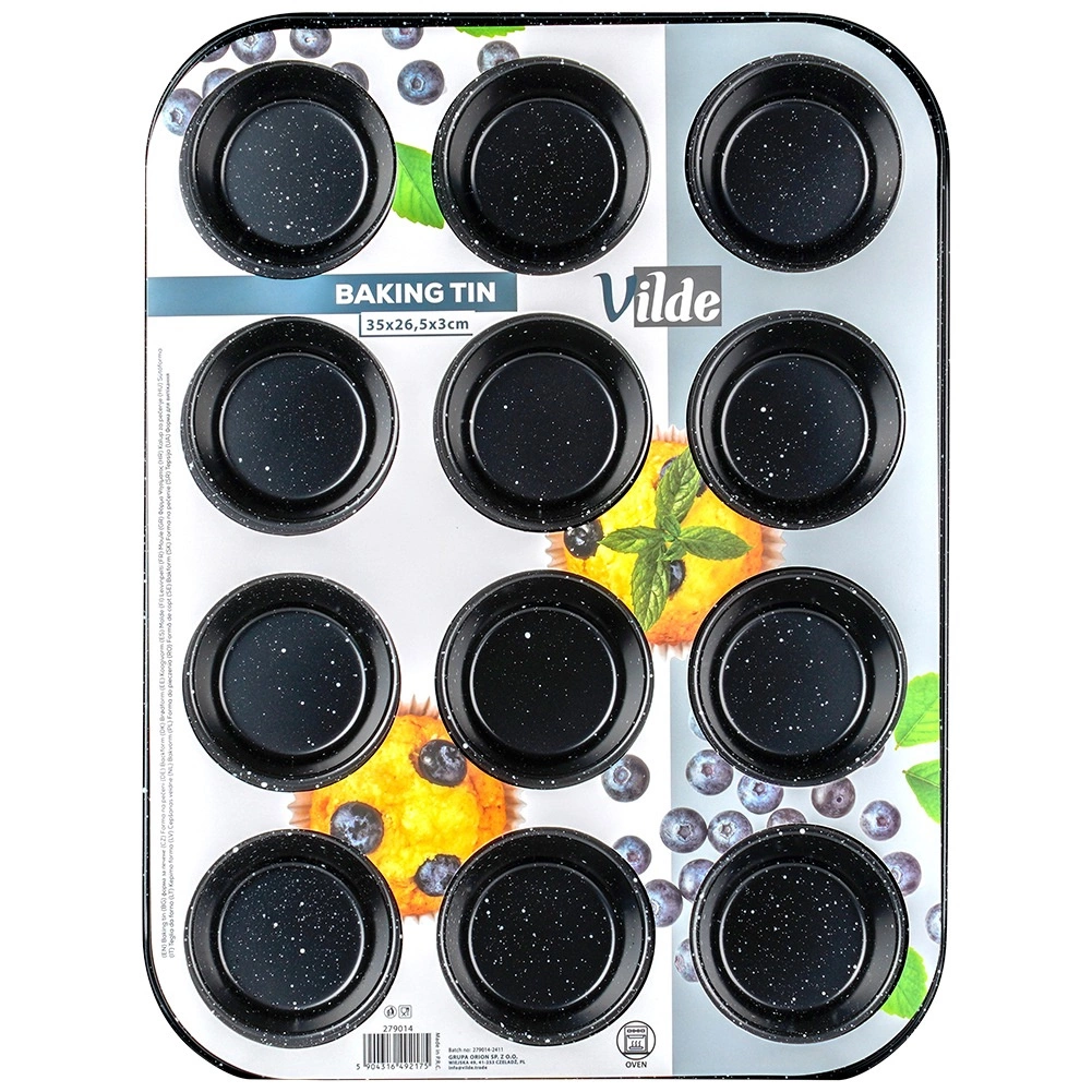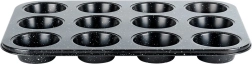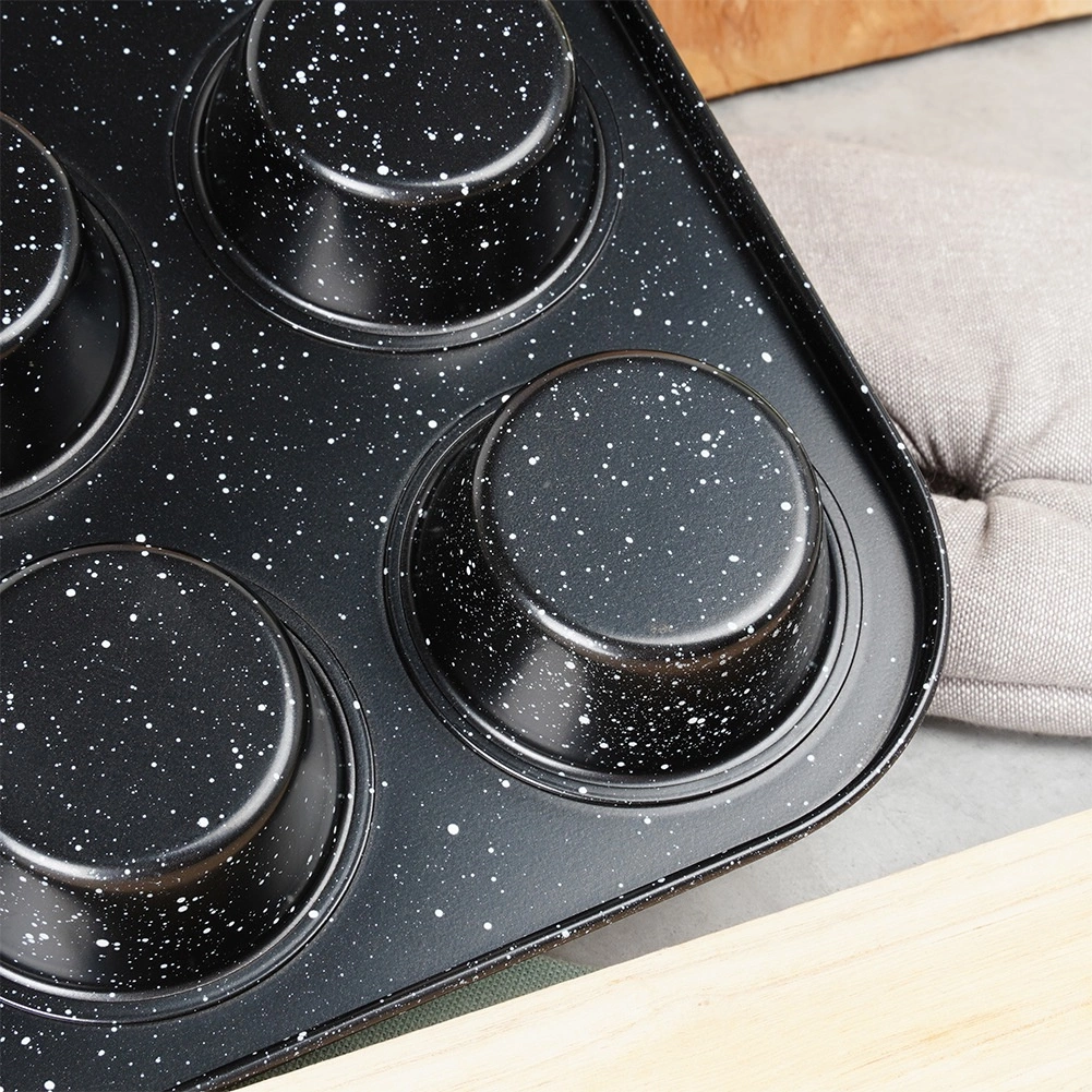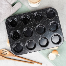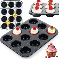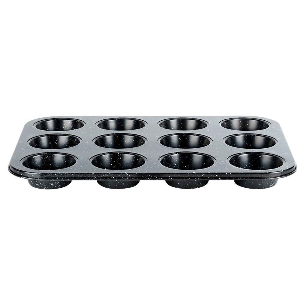 Ce moule à muffins de haute qualité, en acier au carbone résistant avec revêtement granit antiadhésif, est idéal pour préparer des douceurs sucrées comme des versions salées. Il permet de réaliser jusqu’à 12 portions parfaites en une seule fournée, conduit remarquablement la chaleur et aide à obtenir un cœur bien cuit et des bords croustillants.