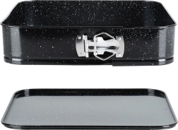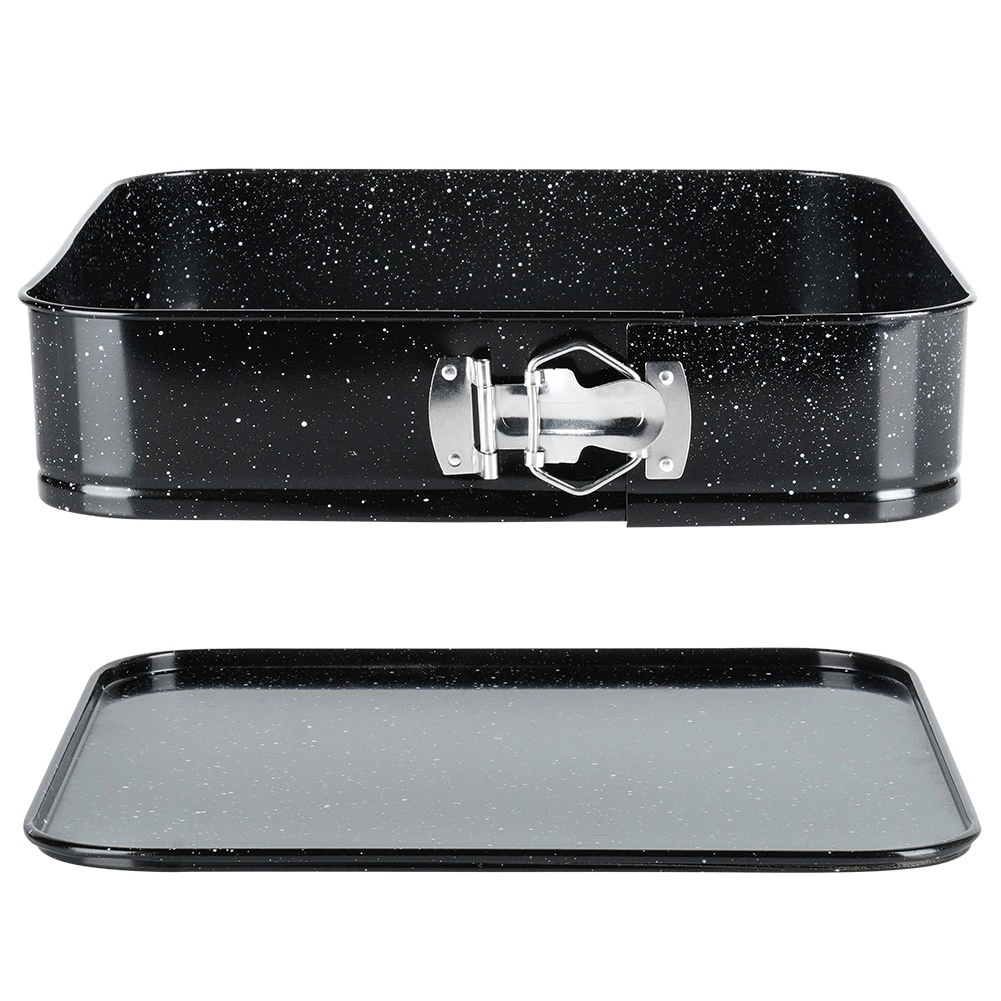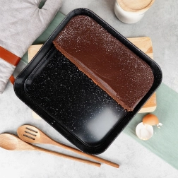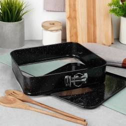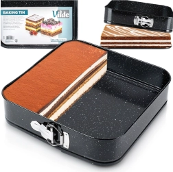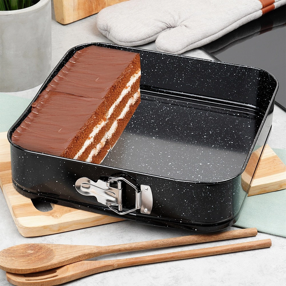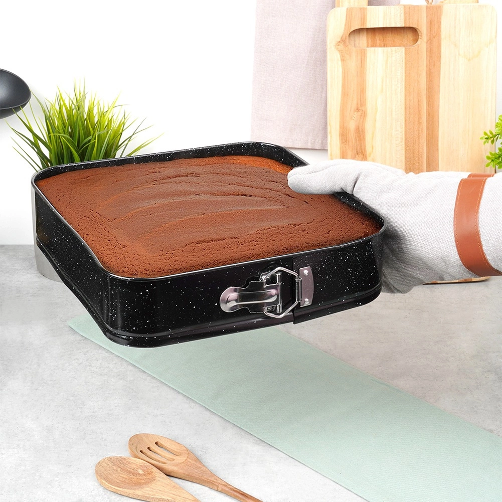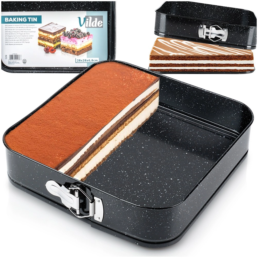 Ce moule carré à charnière 28 × 28 × 6,8 cm est un excellent choix pour la pâtisserie au quotidien. Le corps en acier carbone de qualité avec revêtement granit garantit une excellente conduction de la chaleur et réduit les risques d’adhérence. Ouvrez facilement le moule grâce à la boucle latérale et, grâce au fond amovible, démoulez la base sans l’abîmer.