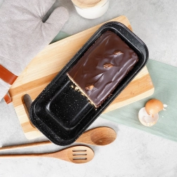 La forme rectangulaire aux angles arrondis maintient la pâte en place et facilite l’extraction du pain ou du pâté sans l’endommager.