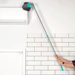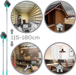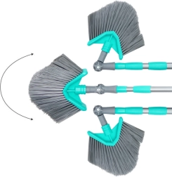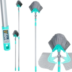 Ce balai polyvalent avec tige télescopique gère le nettoyage même dans les zones difficiles d’accès. La tête triangulaire avec rotation et inclinaison réglable nettoie précisément les coins, les arêtes au plafond et les étagères hautes. Grâce à la réglage fluide de la longueur 115–180 cm, il s’adapte facilement à vos besoins et réduit la nécessité d’utiliser une échelle.