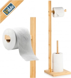 Un accessoire pratique et stylé pour toute salle de bain : le support en bois de bambou de qualité combine un distributeur pour un déroulement confortable et un rangement vertical astucieux des rouleaux de rechange. Son design compact économise l’espace et garde le papier toilette toujours à portée de main.