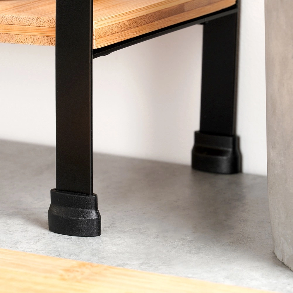 L’étagère est stable et durable grâce à ses pieds métalliques et à une fabrication de qualité. Les embouts antidérapants protègent la surface des rayures. Avec ses dimensions compactes de 29,5 × 29,5 × 33,5 cm, vous la placez facilement sur le plan de travail, dans un placard ou sur un meuble de salle de bain.