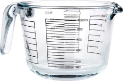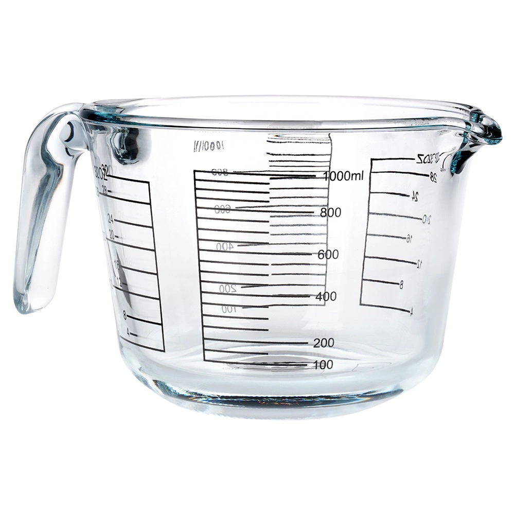 Pratique verre doseur de 1 l avec poignée ergonomique et bec verseur pour un coulage facile. Grâce à une échelle lisible en ml et fl oz, vous mesurez les liquides avec précision et confort. Fabriqué en verre borosilicaté, résistant aux chocs thermiques, compatible lave-vaisselle, micro-ondes et four.